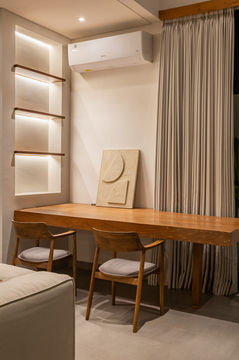 For those balancing work and home life, a dedicated workspace is thoughtfully integrated, ensuring productivity in a serene setting.